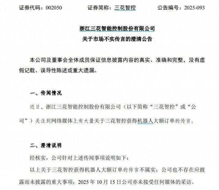 【大河财立方消息】10月15日晚间億策略億策略,三花智控发布澄清公告,近日,关注到网络媒体上有大量关于三花智控获得机器人大额订单的传言。